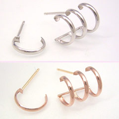おすすめコーディネート シンプルなホワイトゴールドのピアスは どんなファッションにもぴったり! ヘアスタイルをアップにまとめて、 耳元をすっきり見せて・・ みんなをびっくりさせてみては!? 材質 K18ホワイトゴールド/K18ピンクゴールド キャッチ K18ホワイトゴールド/K18ゴールド 大きさ リング 幅1.5mm 直径8mm 3連リング幅10mm ポスト 8mm 品番 P1014111-2ピアスホールが1つでも大丈夫な3連ピアス! あっというまに、大変身・・!? K18カラーゴールドピアス・タタン いつもと違うシルエットで、 ちょっぴり大胆に・・! こちらは大人気の作品「NANA」の ピアスを出して、というお客さまからの リクエストにおこたえして限定入荷! ピアスホールをたくさんあけたいけれど なかなか挑戦できなくて・・ そんなお客さまの声におこたえして、 たくさんホールがあいているように見える めずらしいデザインのピアスを 2色のカラーゴールドでお作りしました! パッと見には、どうなってるの?と 考えこんでしまいそうな、不思議なフォルム。